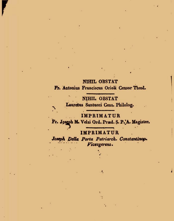 NIHIL OBSTAT Pr. Antonius Franciscus Orioli Geosor TheoI NIHIL OBSTAT Lauretus Santucci Gens, Philolog. IMPRIMATUR fr. Jpsg^h M% Velzi OrdvPraed. S. P^A. Magister. IMPRIMATUR Joseph Della Porta Patriarchi Constantinop. Ficesgerens. Googk -