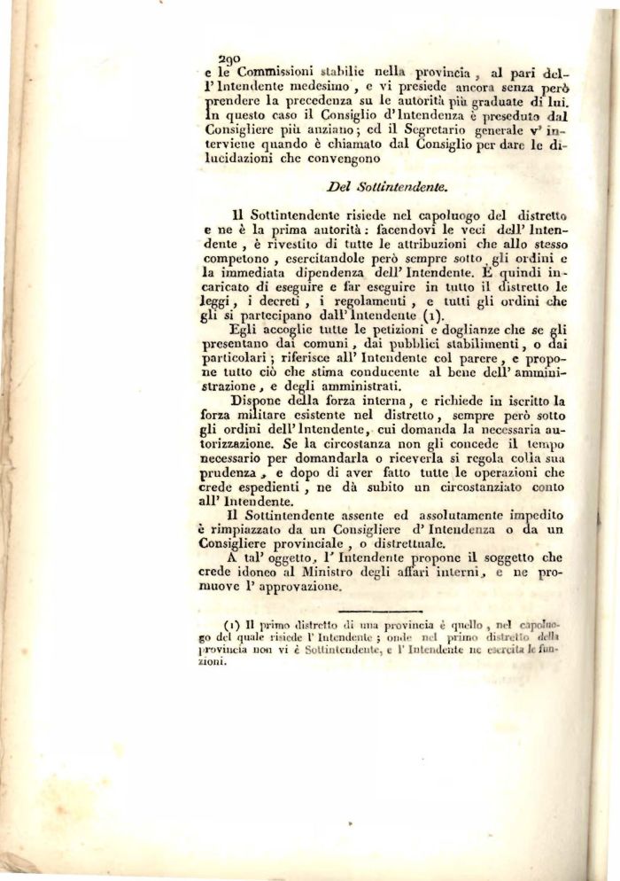 (i) Il primo distretto ili una provincia è quello , nel capoluogo del quale risiede 1' Intendente ; onde mi primo distreln. dilli provincia non vi c Sottintendente, e l'Intendente ne cArciU li funzioni.