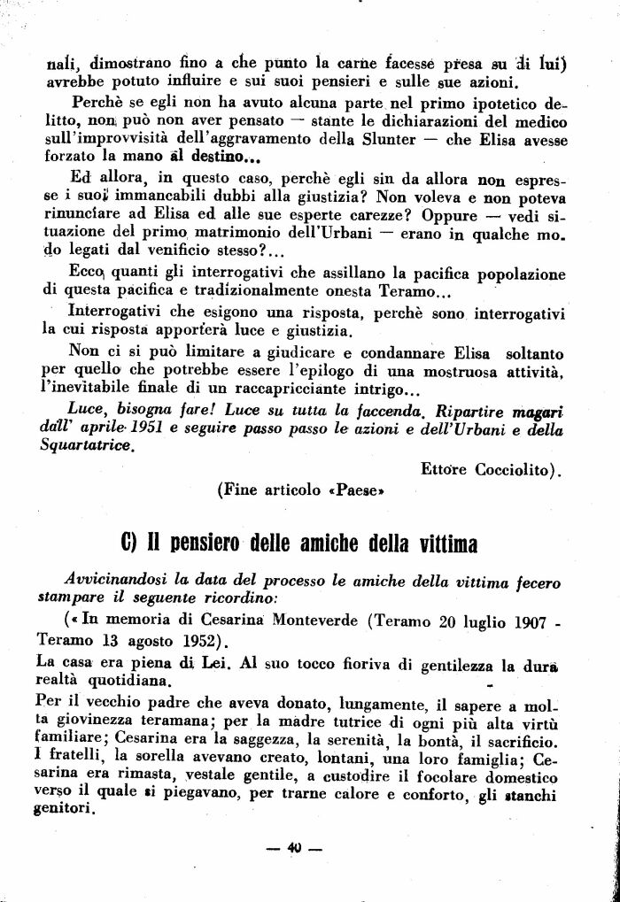 Questa pubblicazione comprende una rassegna stampa e gli atti del processo di uno dei più efferati delitti che sconvolsero la città di Teramo nel 1952.