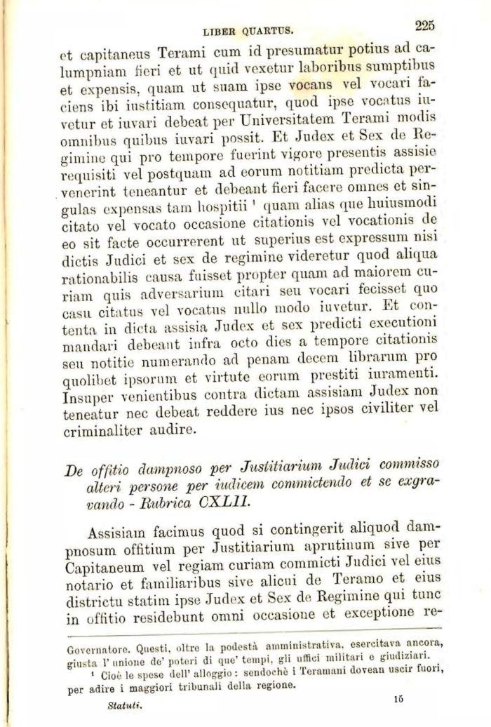 Assisiam facimus quod si contingerit aliquod dain-pnosum oftìtium per Justitiarium aprutinum sive per Capitaneum vel regiam curiam commicti Judici vel eius notario et familiaribus sive alieni de Teramo et eius districhi statini ipse Judex et Sex de. Regimine qui tunc in offitio residebunt omni occasione et exceptione re-