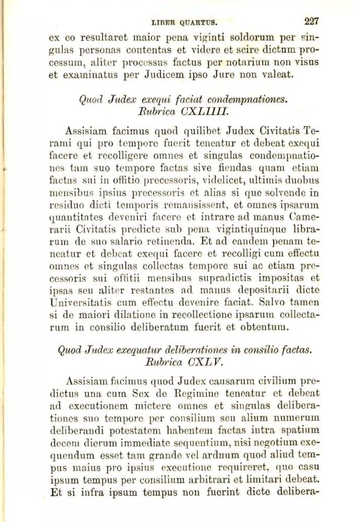 Assisiam facimus quod quilibet Judex Civitatis Terami qui prņ tempore fuerit teneatur et debeat exequi facere et recolligere omnes et singulas condonipnatio-nes tam suo tempore factas sive liendas quam etiam factas sui in otlitio precessoris, videlicet, ultimis duobus mensibus ipsius precessoris et alias si que solvendo in residuo dicti temporis romansissent, et omnes ipsarum quantitates deveniri l'acero et intrare ad manus (-ame-rarii Civitatis predicte sub pena vigintiquinque libra-rum de suo salario retinenda. Plt ad eandem penam teneatur et debeat exequi l'acero et recolligi cum effectu omnes et singulas collectas tempore sui ac etiam precessoris sui oftitii mensibus supradictis im])ositas et ipsas seu al iter restantes ad manus depositarli diete Universitatis cum effectu devenire faciat. Salvo tamon si de maiori dilatione in recollectione ipsarum collecta-rum in Consilio deliberatimi fuerit et obtentum.